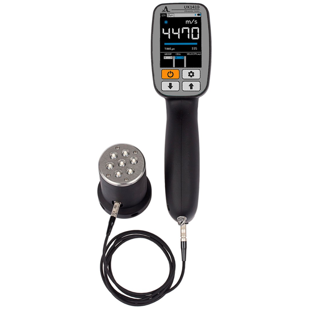 Компактный, легкий и удобный в использовании ультразвуковой тестер UK1410 для измерения времени и скорости распространения продольных ультразвуковых волн в твёрдых материалах при сквозном прозвучивании. В процессе контроля допускается проведение поверхностного прозвучивания.