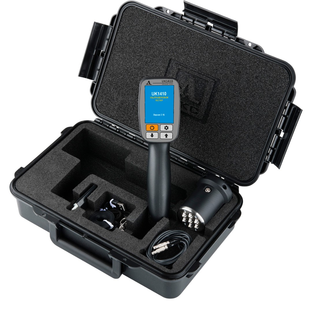 В корпус ультразвукового тестера UK1410 встроен семиэлементный преобразователь с сухими точечным контактом (СТК), принимающий ультразвуковую волну. Излучение ультразвуковой волны осуществляется выносным семиэлементным СТК преобразователем, подключенным к корпусу прибора с помощью одинарного кабеля LEMO-LEMO.