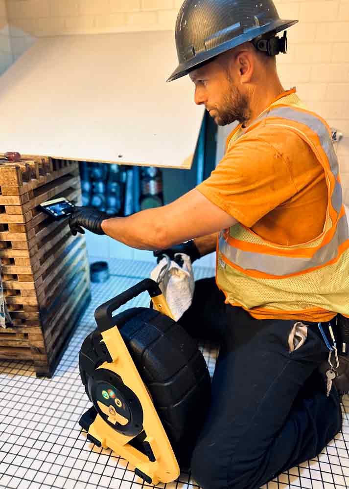 vCamDrain — компактная система видеодиагностики трубопроводов с беспроводным управлением по Wi-Fi через мобильное приложение vCam Mobile Controller (VMC). Подключение осуществляется напрямую к катушке, без интернета и дополнительных устройств. Через приложение оператор управляет подсветкой камеры, сбросом счётчика метража, работой трассировочного зонда (512 Гц) и наложением текстовых комментариев. В интерфейсе отображается уровень заряда аккумулятора, статус зарядки и состояние Wi-Fi. Видеозапись сохраняется непосредственно в приложении с возможностью быстрой передачи заказчику либо копирования данных на USB-накопитель через порт катушки.