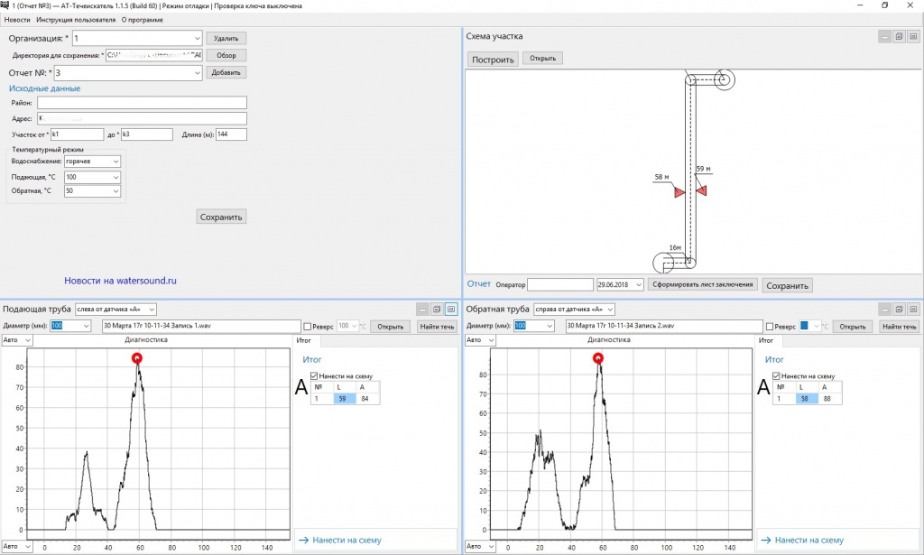 Программа имеет несколько режимов работы, необходимых для различных ситуаций.В режиме автоматической обработки для получения результата достаточно указать длину трубопровода, его диаметр, материал трубопровода, температурные характеристики воды. В ручном режиме допускается множество корректировок различных параметров, наиболее подходящих для конкретных ситуаций.