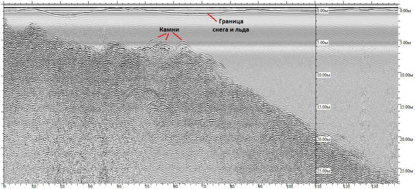 - в реальном времени оператор получает визуальную информацию о толщине льда, нормативной нагрузке, трещинах и неоднородностях внутри массива.