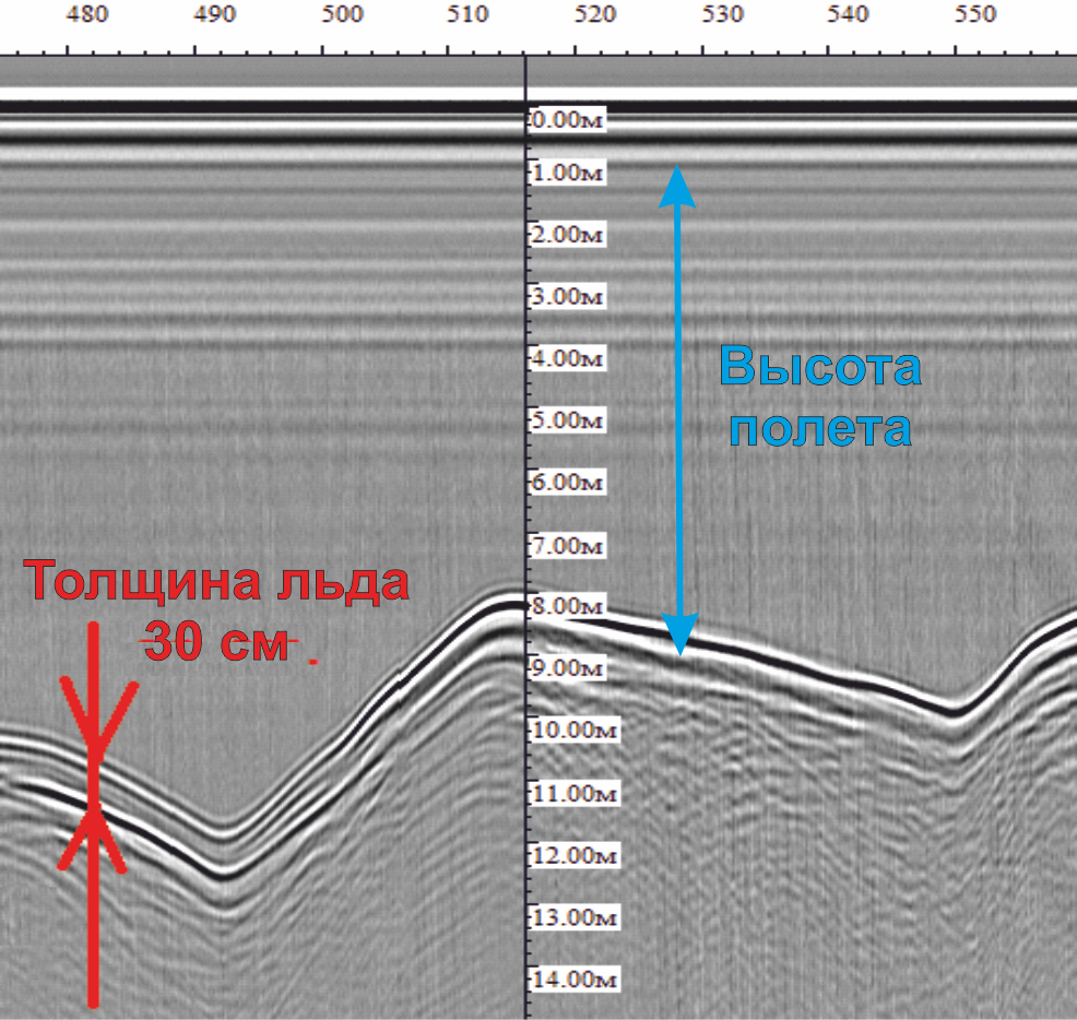 - в реальном времени оператор получает визуальную информацию о толщине льда, нормативной нагрузке, трещинах и неоднородностях внутри массива.